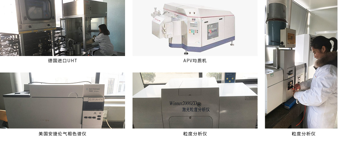 研發(fā)中心占地2000多平米,配備了國內(nèi)先進(jìn)的實驗儀器和設(shè)備,從日本、美國、德國等國家引進(jìn)了UHT超高溫?zé)o菌灌裝模擬生產(chǎn)線、發(fā)酵酸奶模擬生產(chǎn)線、APV均質(zhì)機(jī)、安捷倫氣相色譜儀、氣質(zhì)聯(lián)用儀,穩(wěn)定性分析儀器和馬爾文激光粒徑分析儀等先進(jìn)的試驗和監(jiān)測分析儀器,為研發(fā)新型牛奶制品、果汁飲料產(chǎn)品、以及產(chǎn)品的質(zhì)量控制提供了可靠的裝備保證。