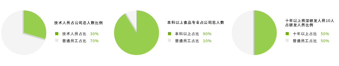 公司擁有強(qiáng)大的研發(fā)團(tuán)隊,技術(shù)人員占公司總員工的30%本科以上食品專業(yè)人員90%